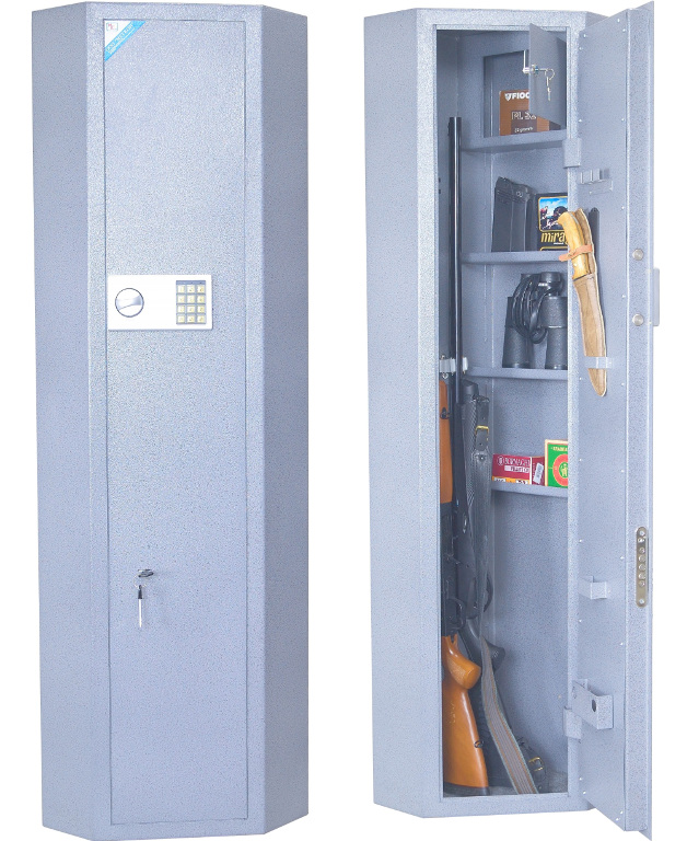 ОШ-3УЭ — угловой оружейный шкаф на три ружья высотой до 1490 мм и боеприпасы к ним. Удовлетворяет всем требованиям МВД к хранению оружия физическими лицами.