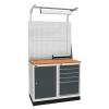 - Бестумбовые верстаки, а также модели с одной и двумя тумбами;