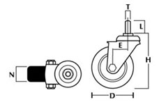 Колесные опоры поворотные и поворотные с тормозом, термо пластическая резина, обод из высокопрочного пластика, болтовое крепление.