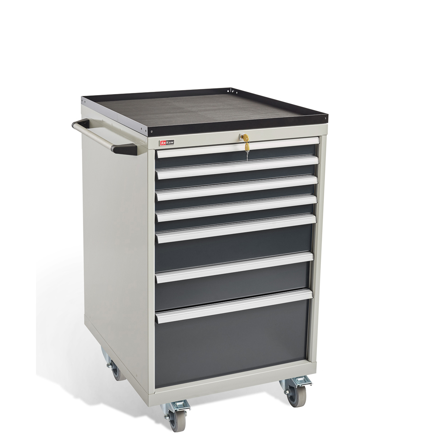 Комплектация: корпус тумбы, 7 ящиков, колеса, лоток, боковая ручка на лоток.